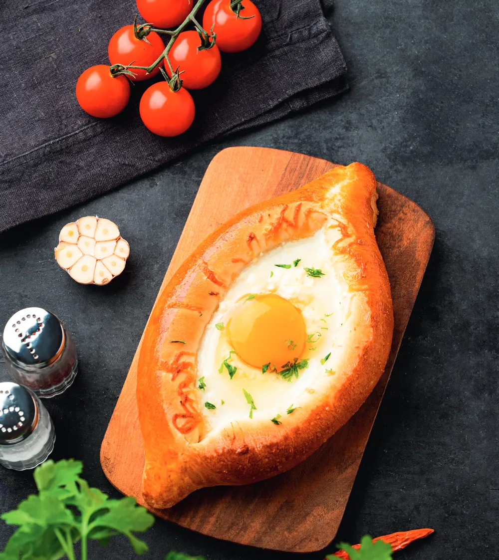 Do not miss the tea houses of Georgia, perfect for winding down after a day on the slopes. The scent of freshly baked nazuki — a sweet, spiced bread — is impossible to resist. Don’t miss out on vegetable stews, khachapuri (cheese bread), khinkali (Georgian soup dumplings), succulent kebabs, and vibrant salads. And a glass of local wine or gut-warming chacha (local alcoholic drink).
